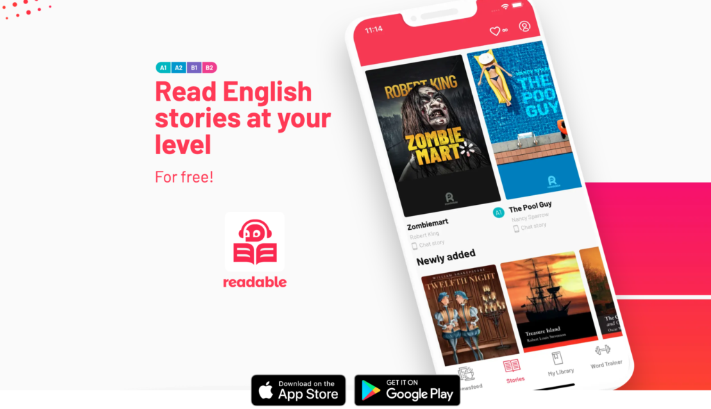 | Readable | ホラー・ミステリーなどの短編やニュースを、学習者レベルに簡素化して提供。全単語に音声・翻訳つき。 |