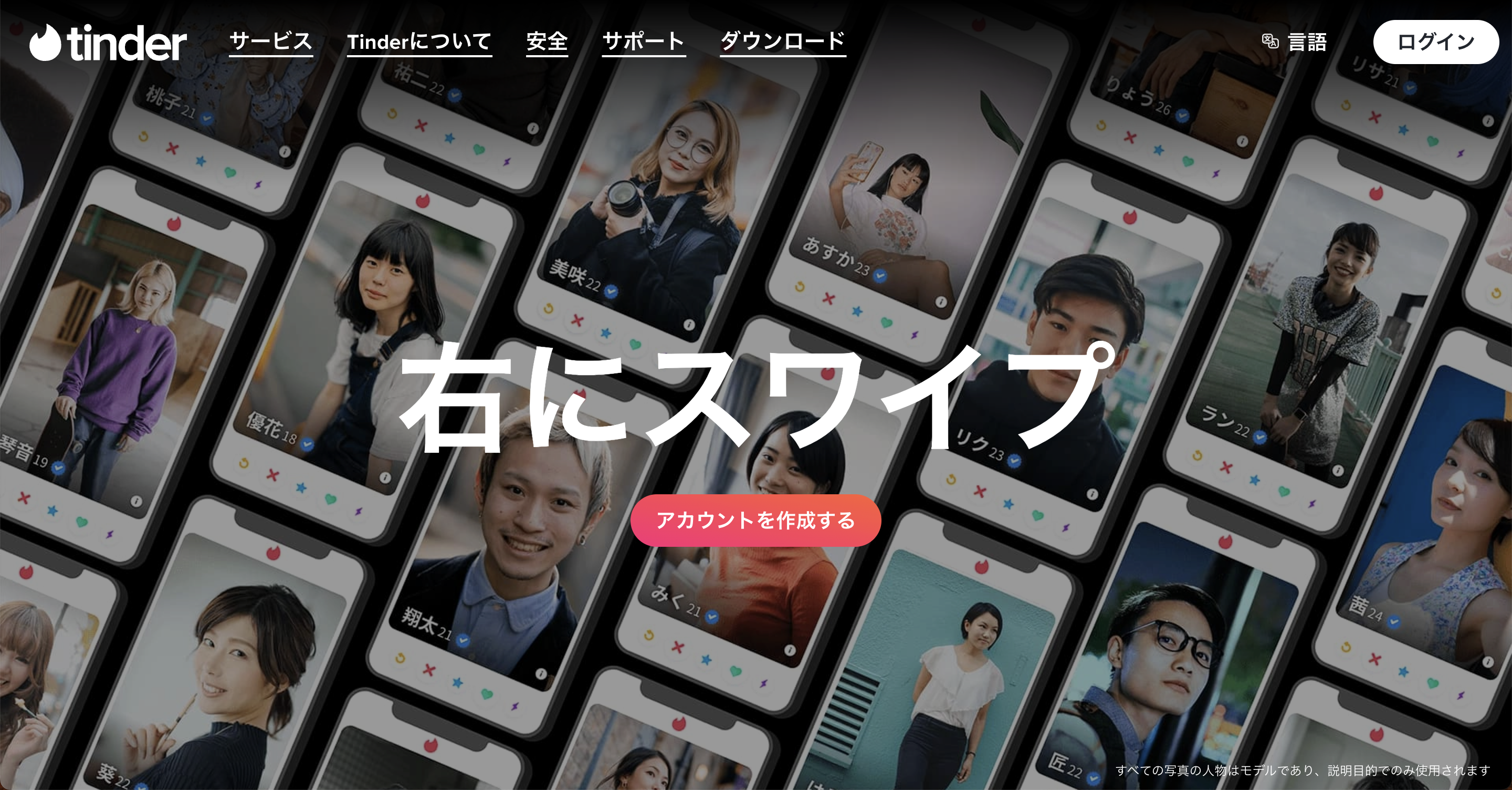 • 年齢:20代中心(Tinder)、30代以上も多い(Meetup, Tandem)など
