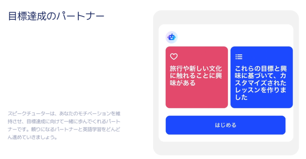 スピークチューターは、AIがあなた専用の英語講師になってくれる機能です。