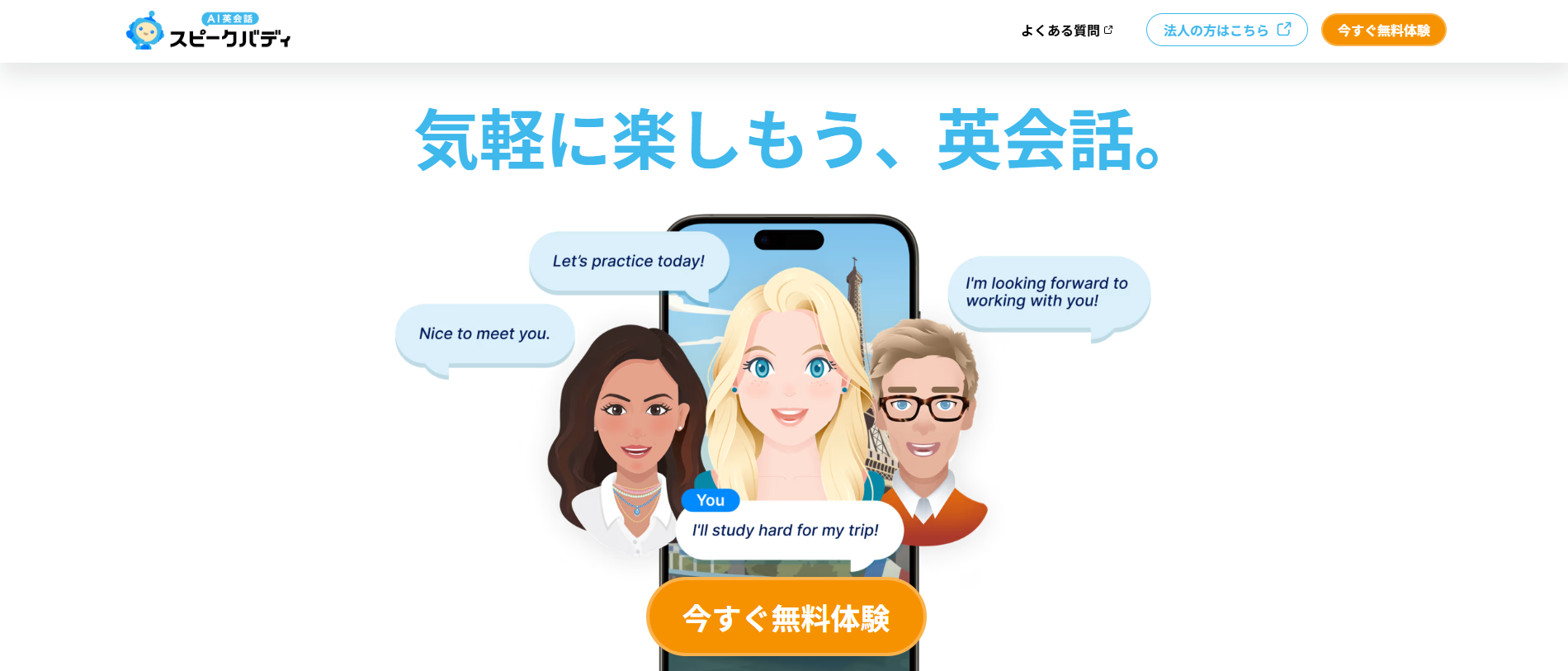 最大の特徴は、感情表現豊かなAIバディと英会話の練習ができる点です。人間の講師が相手ではないため緊張することなく、何度も繰り返し練習ができ、初心者であってもミスを恐れず自分のペースで取り組めます。
