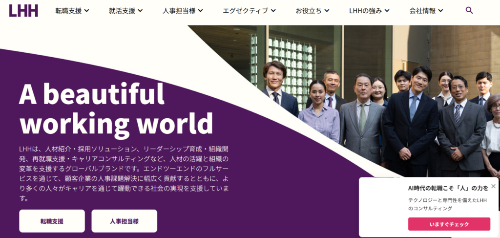LHH転職エージェントは、アデコ・グループ(Adecco Group)が運営する転職エージェントサービスです。