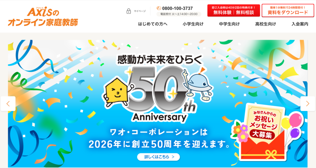 Axisのオンライン家庭教師は、全国600教室以上を展開するワオ・コーポレーションが運営するサービスです。「大手なのはわかっているけど、自分の子どもに合うかどうか」はまた別の問題。料金・講師の質・サポート体制、どれをとっても家庭ごとに評価は変わります。