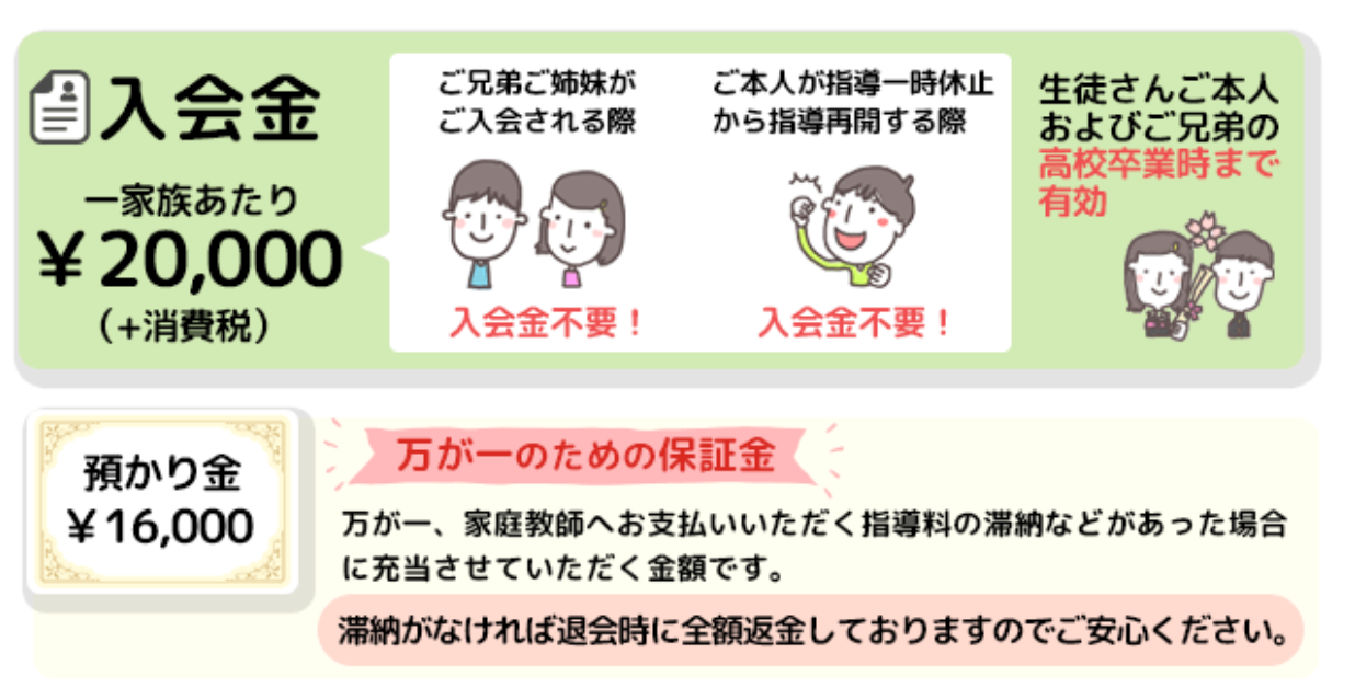 - 管理サポート費に注意:指導料とは別に、管理サポート費(小中学生9,800円、高校生13,400円)が毎月かかります。この費用には、学習計画のサポートや指導報告などが含まれます。