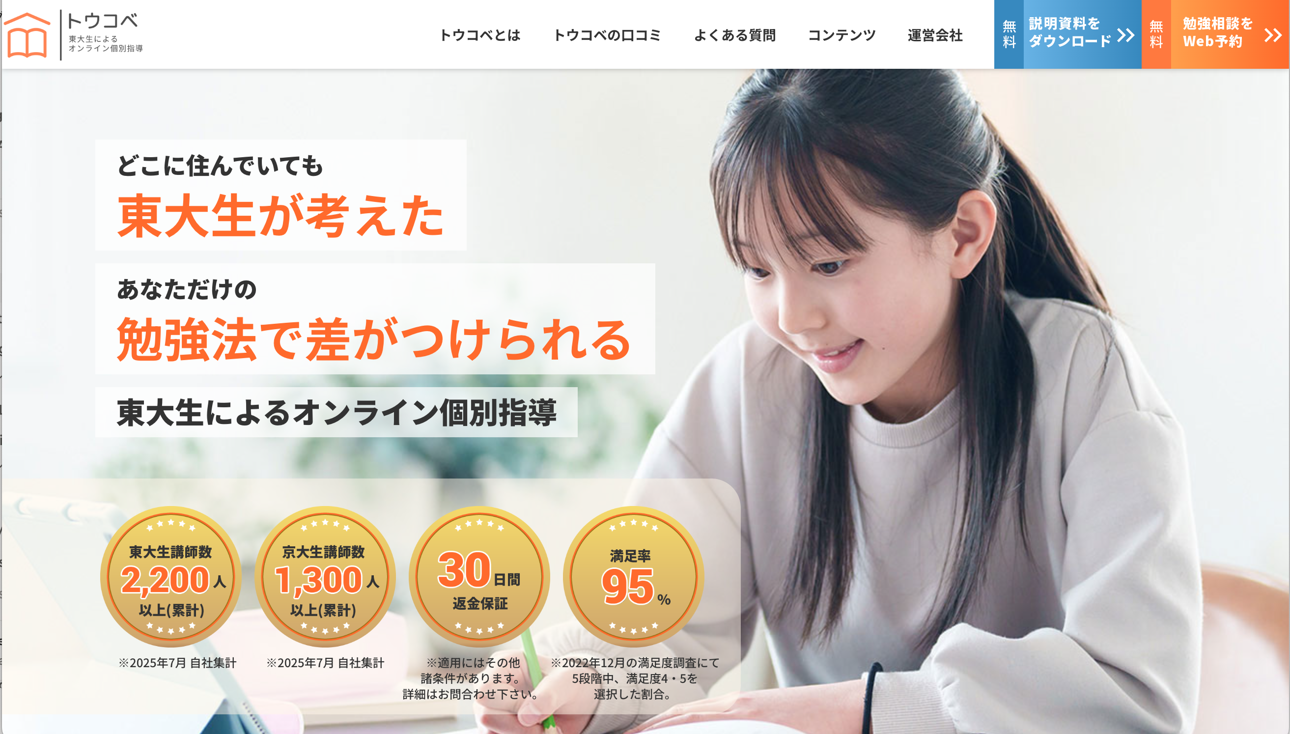 サービス名 トウコベ(東大生によるオンライン個別指導)