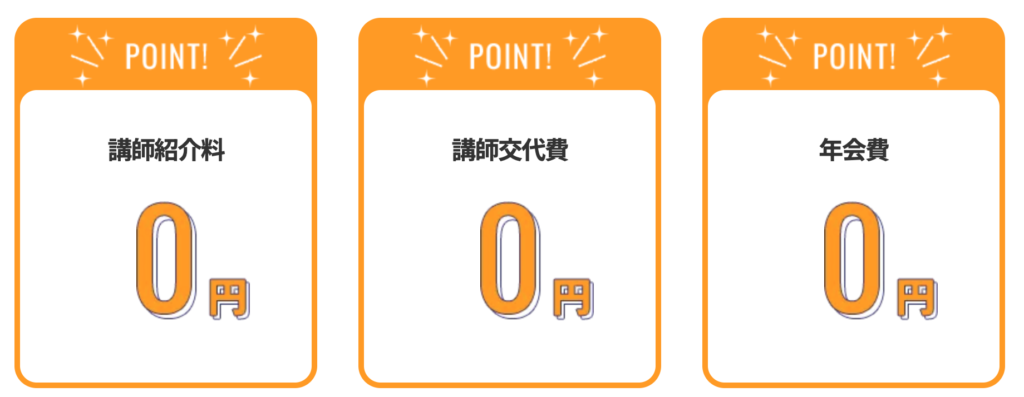 | 講師紹介料・交代費・年会費 | すべて0円 |
