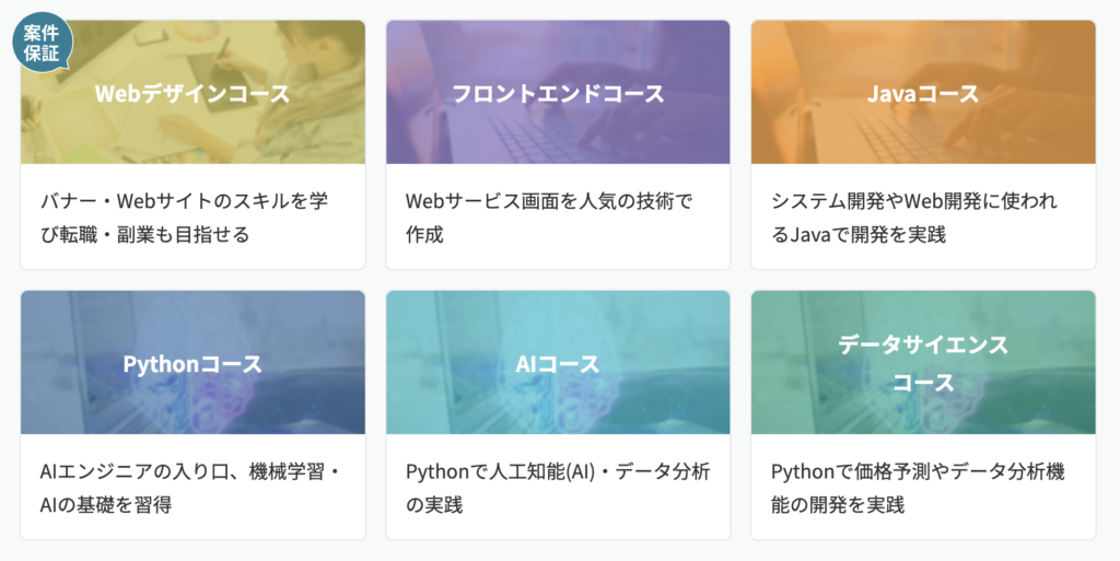 • 20種類以上のコースと、転職保証・副業特化プランの充実