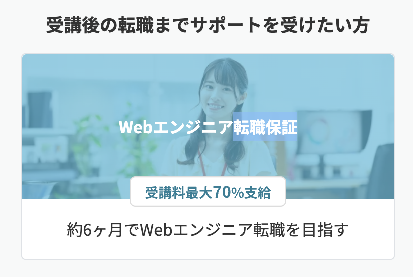 Webエンジニア転職保証コース 転職保証付き・16週間でエンジニア転職を目指す