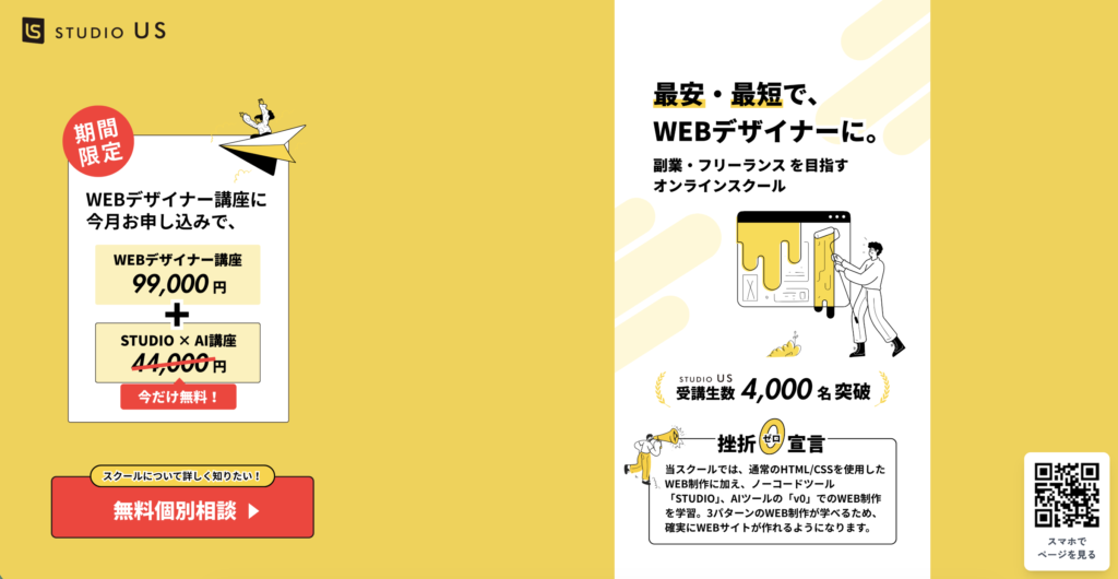 タイミングを合わせることで、通常価格より数万円割引になるケースもあります。気になるスクールのメルマガやSNSをフォローしておくと、キャンペーン情報を見逃しにくくなります。