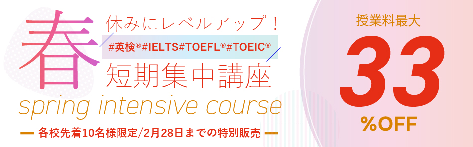 | その他 | ●英検やTOEIC対策のクラス、長期休み中の「シーズンセミナー」、パソコンを使用する「インタラクティブコース」、「帰国子女クラス」などあり ●欠席の場合、フレックスプライベート・フレックスセミプライベートレッスンは、無料振替レッスンを受講可能。その他は原則、振替制度なし。ただし、希望者には欠席に対する有料の補講プライベートレッスンを実施。 |