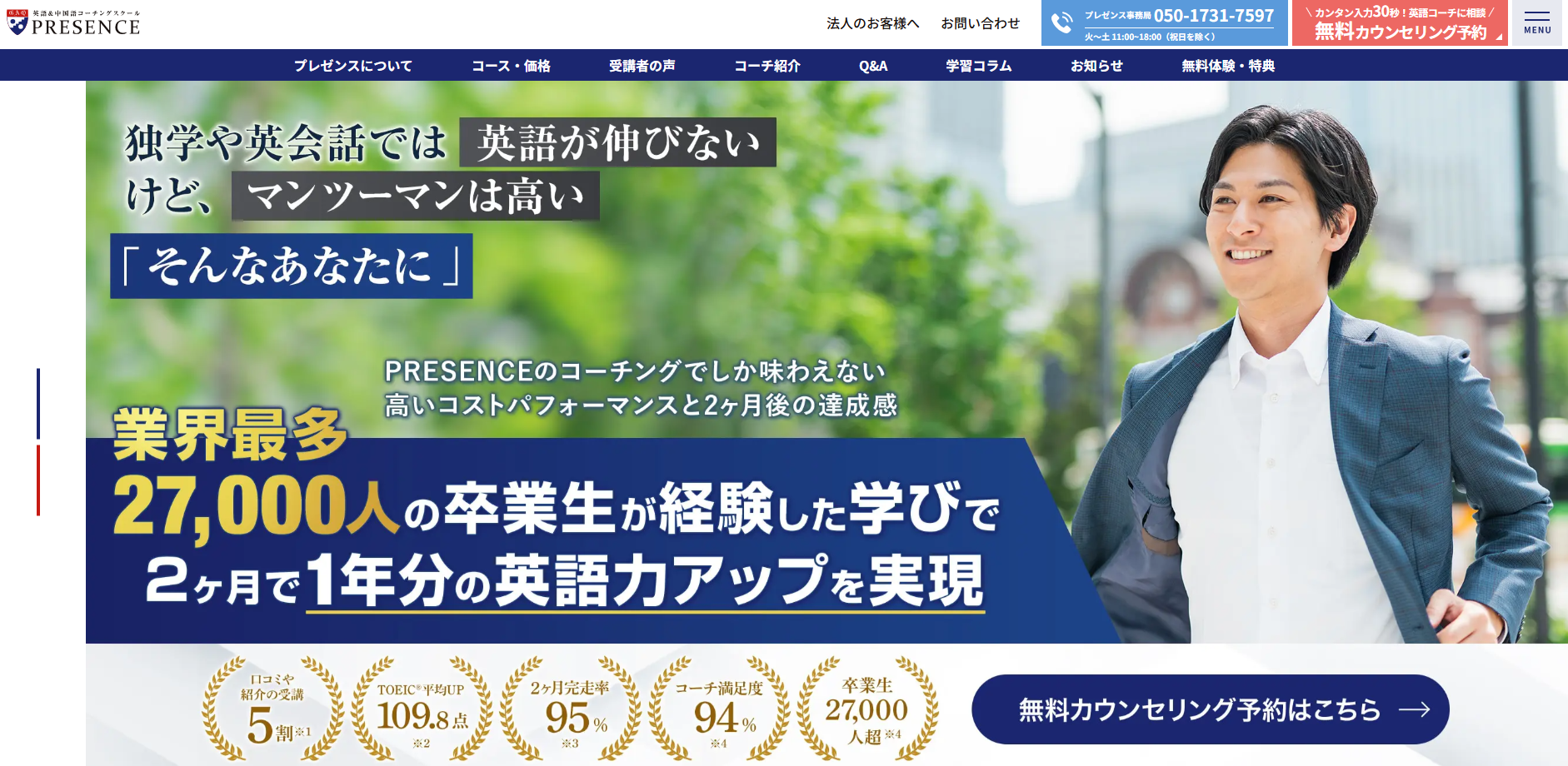 「英語での仕事の質を上げたい」「業務遂行レベルの英会話力を短期間で伸ばしたい」という方にとって、プレゼンスは非常に相性の良いスクールです。